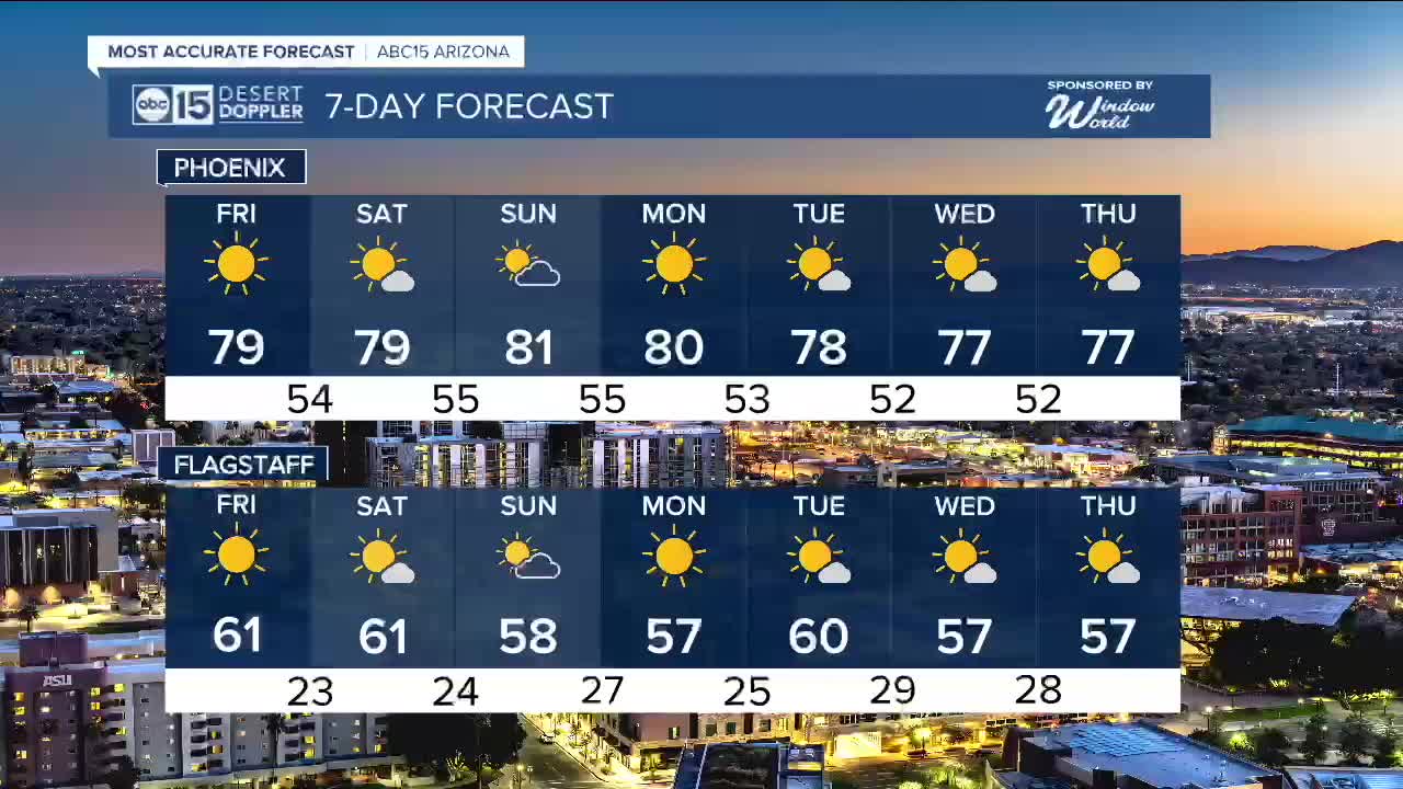 Overnight lows will drop into the upper 40s to mid 50s across the Valley, which is several degrees above normal as well.