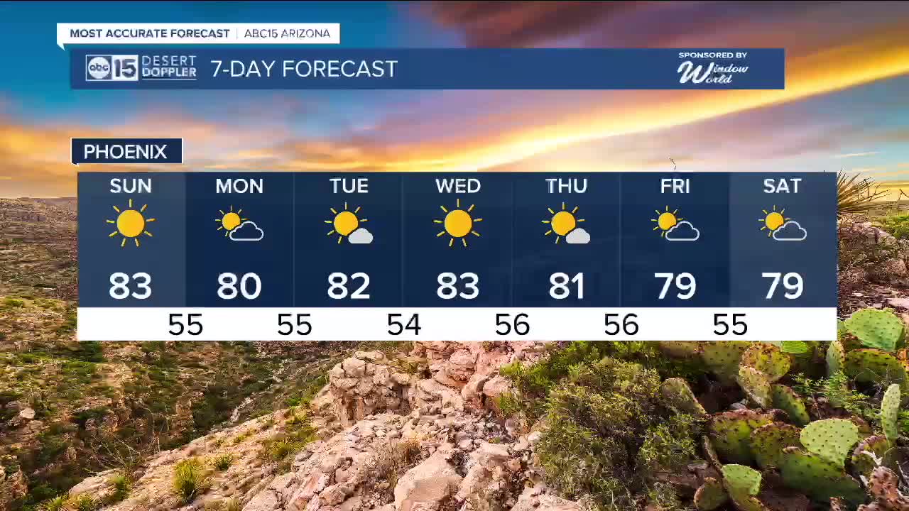Mornings won’t be as warm, though. Overnight lows will drop into the upper 40s to mid-50s across the Valley throughout the week.