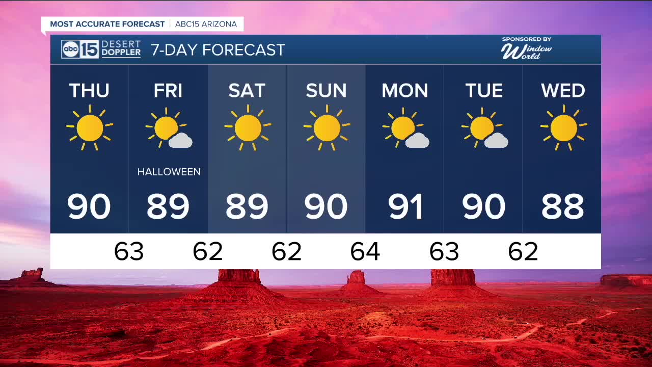 That slight cool-down will put trick-or-treating temperatures in the mid 70s to low 80s on Halloween night in the Valley.