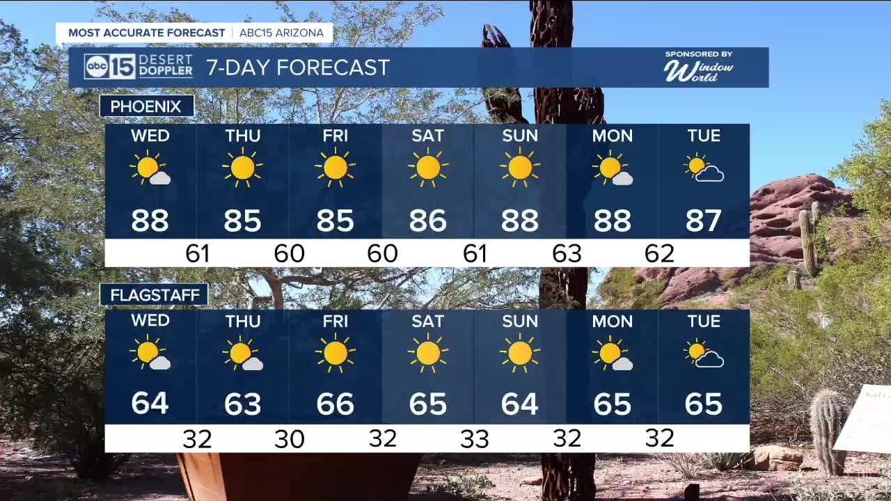 We're expecting some passing clouds at times, but there are no chances for rain as our forecast stays dry across Arizona this week.