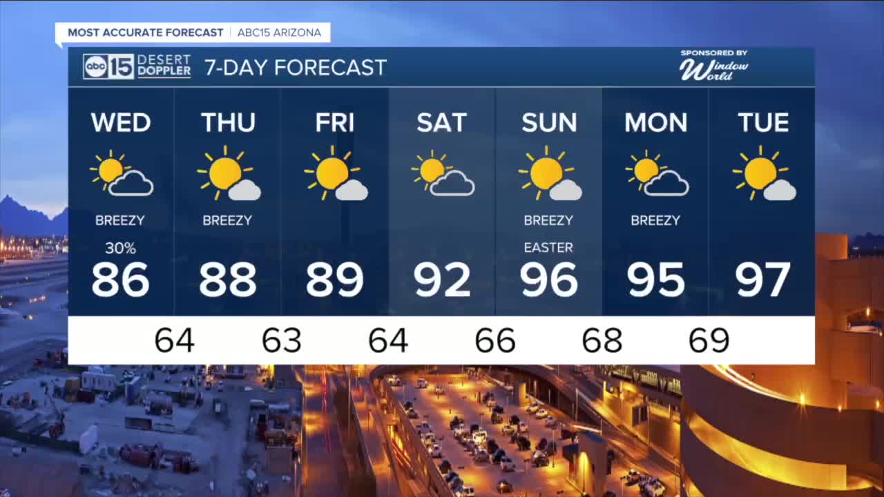 Those winds will usher in some cooler air, dropping temperatures several degrees on Wednesday. That will put the Valley in the mid to upper 80s Wednesday afternoon.