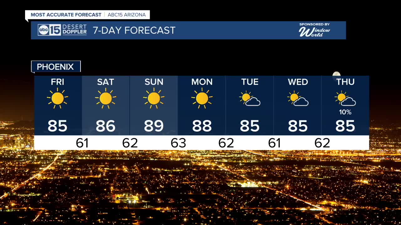 PHOENIX — Our forecast is staying sunny and dry across Arizona as we wrap up the week and head into the weekend.