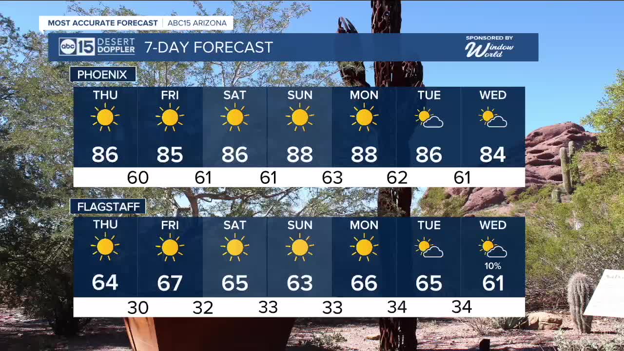 Temperatures will drop to the mid 80s on Thursday, Friday and Saturday. Overnights will remain chilly and in the mid 50s to low 60s around the Valley.