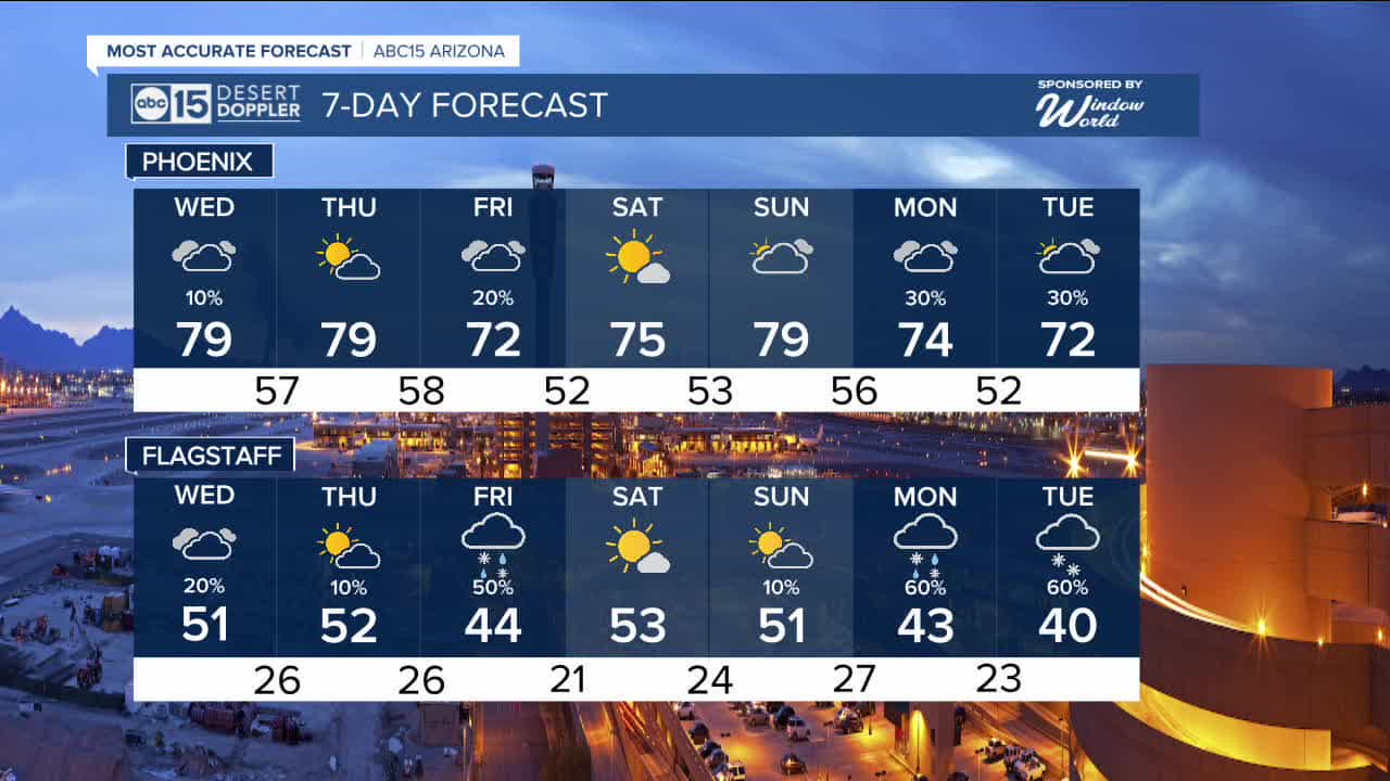 Temperatures will drop several degrees to end the week, putting Phoenix down in the low 70s on Friday.