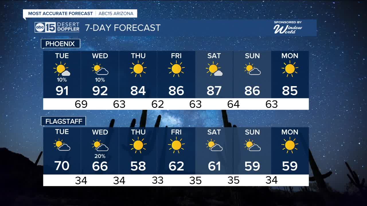 We're also tracking a weak storm system that will move across Arizona on Wednesday, dropping temperatures and picking up some breezes.