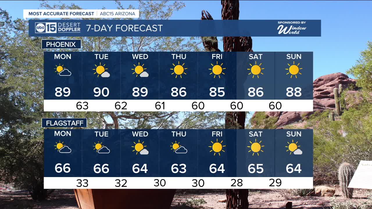PHOENIX — After a warm weekend for the Valley, we are set to continue seeing afternoon temperatures running five to eight degrees above average through Wednesday as high pressure builds across the Southwest.