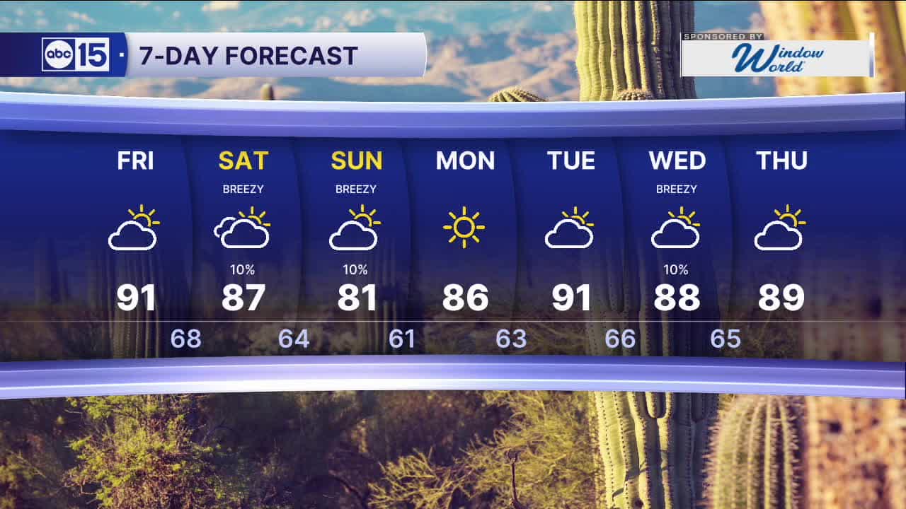 The bigger change will be in our temperatures as highs across the Valley drop into the upper 70s to low 80s on Sunday.