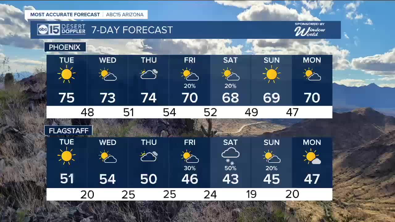 PHOENIX — Warm and dry conditions continue through midweek before an unsettled weather pattern takes over the forecast.