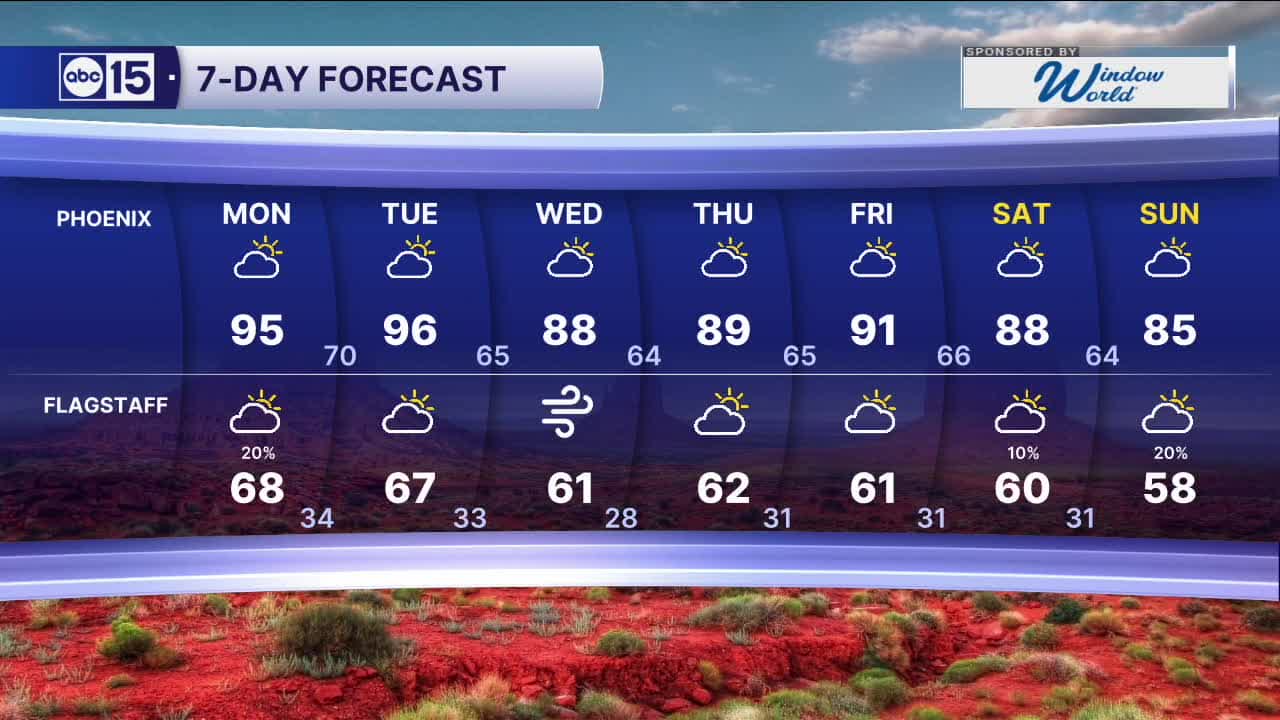 PHOENIX — High pressure stays in control to start the week, keeping Valley afternoon highs in the mid-90s. If you're heading outside, bring sunscreen and water.