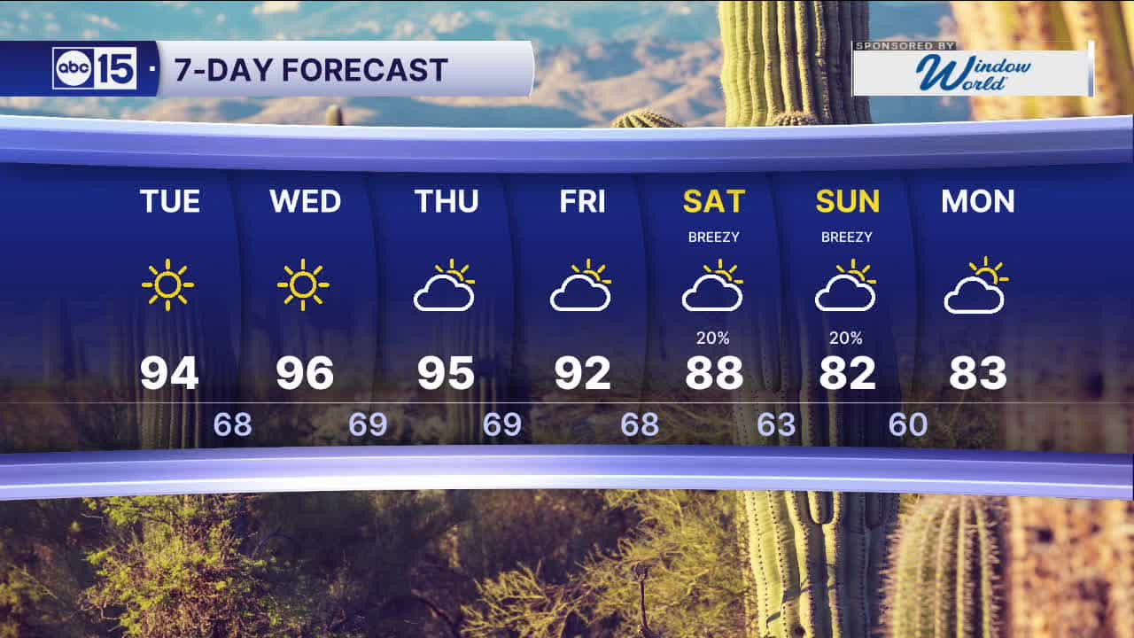 Expect temperatures back in the 80s in Phoenix on Saturday and Sunday as breezes pick up again.