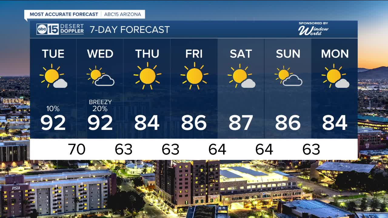 We're also tracking a weak storm system that will move across Arizona on Wednesday, dropping temperatures and picking up some breezes.