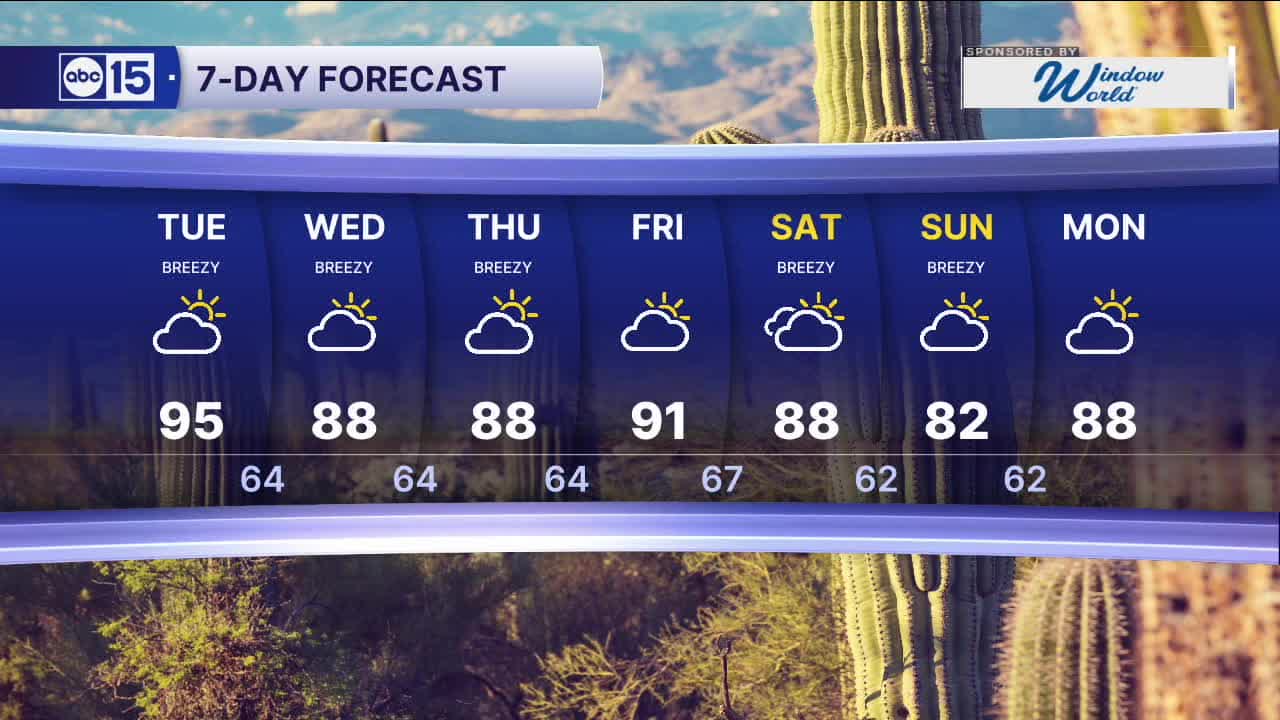 Here in the Valley, expect some late afternoon breezes with gusts near 25 mph on Tuesday and Wednesday.