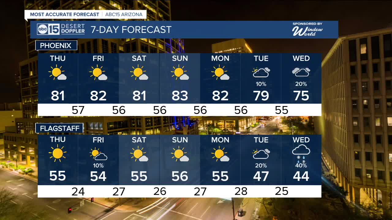 Temperatures will stay unseasonably warm, though. Daily highs will top out near 80 degrees at TPC Scottsdale and the forecast will stay dry, so make sure you are hydrating all day if you are headed out to the Phoenix Open.