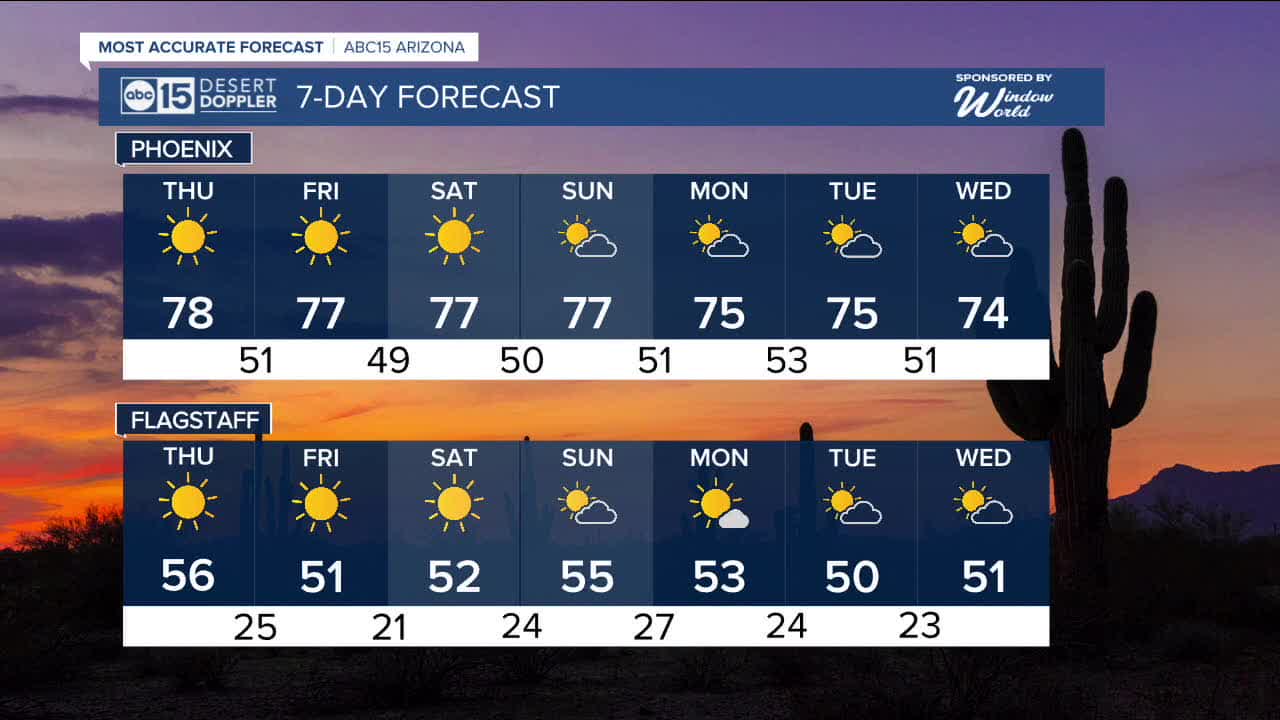 We may feel a few breezes in the Valley, but the windier conditions will stay confined to northern and northwestern Arizona this week. Watch out for wind gusts near 40 mph in Bullhead City!